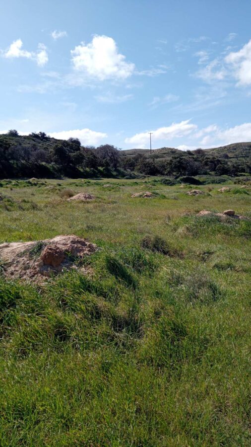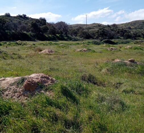 Description: The plot is located in the “VIGLES” area, NEAR THE AIRPORT AND IN A CLOSE DISTANCE FROM THE BEACH OF ACHIVADOLIMNI, with an view of the entrance to the Gulf of ADAMANTAS, and with a BUILDING PERMIT for 2 STONE-BUILT ONE-FLOOR HOUSES of 220 sq m in force (issued in JAN 2026)